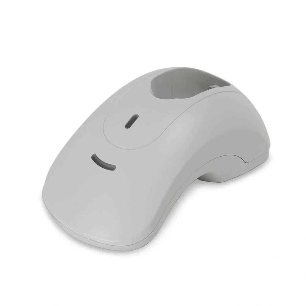Зарядно-коммуникационная станция Cradle (кредл) подходит для сканеров MERTECH CL-2200 и CL-2210. Она обеспечивает обмен файлами между сканирующим устройством и ПК. Когда прибор установлен в слоте, выполняется подзарядка аккумулятора. Держатель позволяет активировать функцию «Свободные руки», что повышает скорость работы оператора. При активации этого режима происходит автоматическое распознавание штрих-кодов, которые попадают в зону действия сканирующего модуля. Фиксатор позволяет задавать нужный угол наклона корпуса для удобного распознавания этикеток. Передача данных выполняется по протоколу Bluetooth Low Energy. Синхронизация беспроводного устройства и станции проводится на расстоянии до 100 м. Подключение к ПК может проводиться через USB-COM. Для выбора интерфейса USB-COM применяется настроечный штрих-код. Подставка Cradle изготовлена из прочного пластика белого цвета. Сборка проведена качественно, без зазоров. Аксессуар можно установить на столе или закрепить на стене. Магнитный фиксатор обеспечивает надежное и устойчивое крепление прибора. Сканер легко устанавливается в слот и быстро извлекается для работы в мобильном режиме.