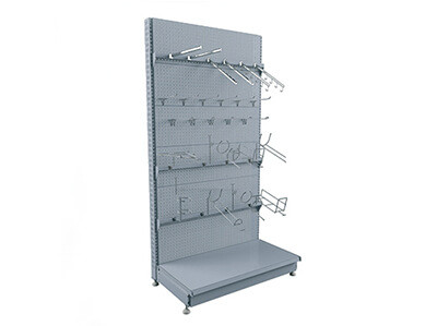 Стеллаж линейный, перфорированный. Перфорированные панели позволяют крепить любые навесные элементы.