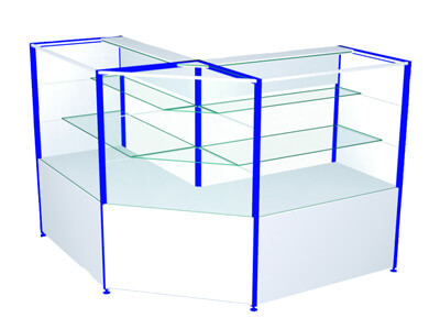 Прилавок соединяется в единую линию и имеет наружный угол.